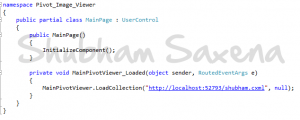 xmlns:pivot="clr-namespace:System.Windows.Pivot;assembly=System.Windows.Pivot" - Add Pivot Viewer Control.